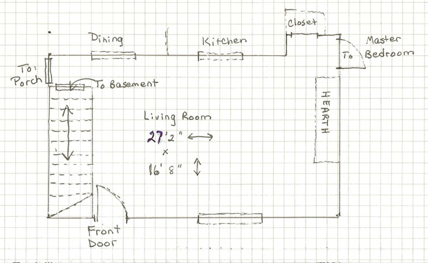* The 27' includes the stair area and area toward porch door. The useable entry and living area is approximately 23'. |